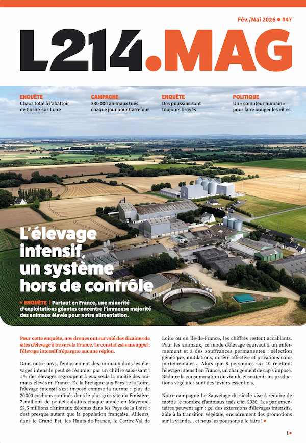 L214 Mag est le bulletin de l’association. Édité 3 fois par an, il est disponible en version électronique et peut être commandé gratuitement en version papier à titre individuel ou pour diffusion.