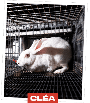 Les lapins endurent un environnement sordide, non adapté à leurs besoins. Les lapereaux naissent à même les barreaux, au risque de se blesser. Animaux grégaires, les lapines subissent l’isolement. Au contraire, à l’engraissement, les lapins doivent supporter des densités élevées, dans de minuscules espaces. Sans accès à l’extérieur, ils n’ont pas même de lumière naturelle.